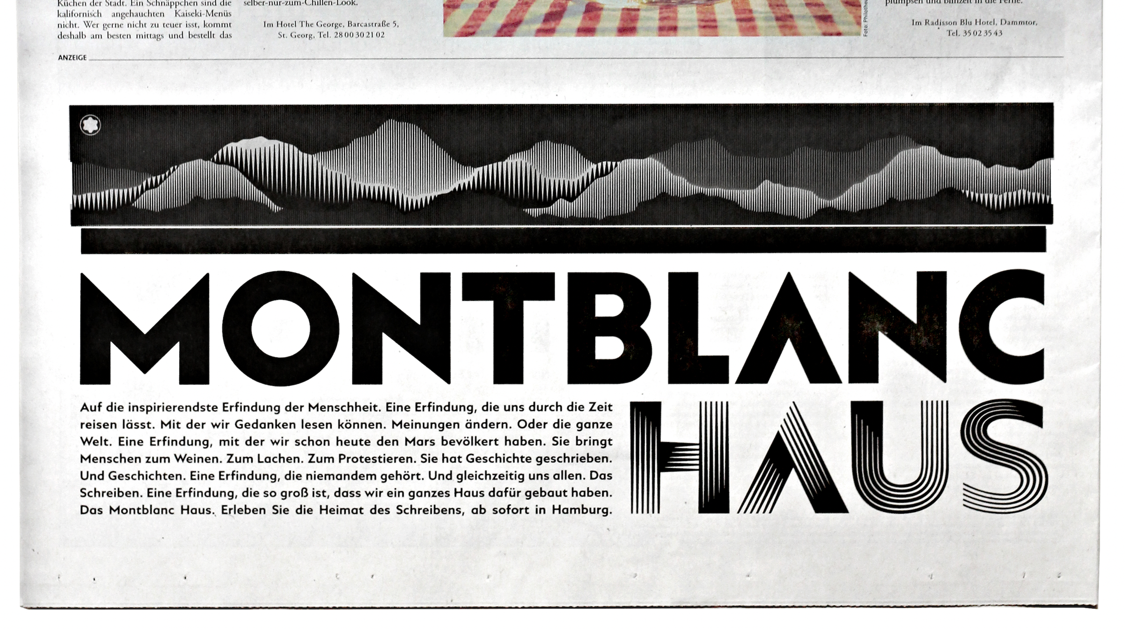Beyond the building itself, several out-of-home and newspaper ads promoted Montblanc Haus.